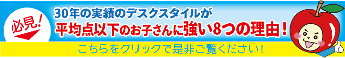 デスクスタイルは、勉強が苦手、勉強が嫌いな平均点以下のお子さんに強い家庭教師として、他社とはひと味違う強みを紹介しています。下記をクリックし是非参考にして下さい!