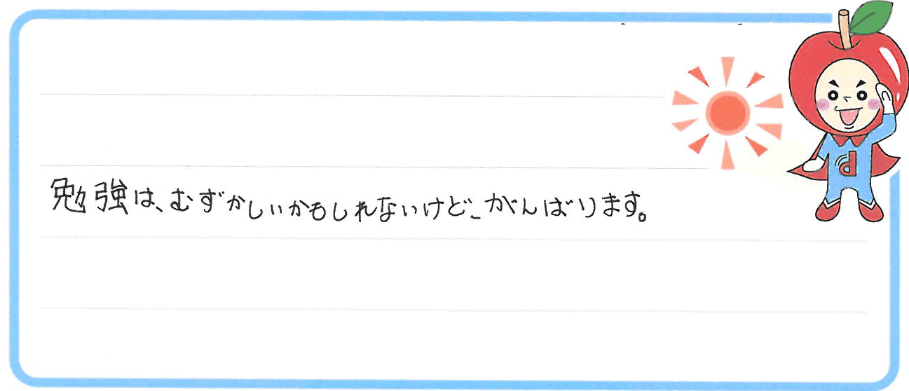 伊予市に住むKちゃん、デスクスタイルの勉強のやり方を聞いてやる気になってくれました。今は勉強は難しいと思うかもしれないけど、理解できるとどんどん楽しくなるから一緒に頑張ろう!