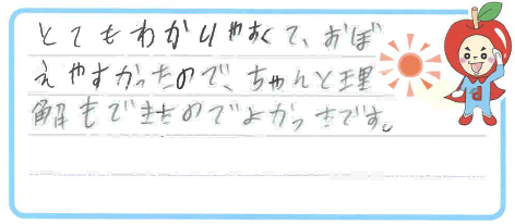 大飯の友達から紹介で体験を受けてくれたH君”わかりやすい!”とリアクションしてくれて良かったです。