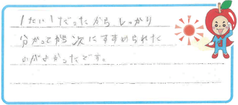 授業についていけなくなっていた坂井市のYくんでしたが、体験授業を受けてもらうと「授業よりわかりやすいかも!」と言ってくれました!これから予習復習をしっかりして授業に臨むことを約束してくれました^^