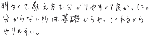 そんな自身の子供の頃の経験と大人になってわかる親の気持ちの両方を理解し、お子さんの悩みに寄り添って勉強に対するやる気や自信を引き出します。
