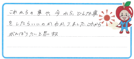 小学生の頃から集団塾に通っていたけど、中学生になって成績が伸び悩んでいる…と話してくれた福山市の中学校に通う2年生のKちゃん。学校の授業にも少しずつついていけなくなってきて不安を感じていました。これからは家庭教師の先生が、Kちゃんがつまずいた問題は学年を戻って基礎からしっかり見直ししていきます。予習・復習のやり方や学校の授業対策のコツなどを掴んで、苦手を克服できるよう一緒に頑張っていこう!