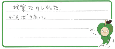 今日、教えてもらったところは、しっかり解けるようになれたと思います。これから自分1人でも勉強をしてテストでいい点がとれるようになりたいです。