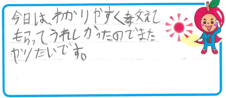 そんな自身の子供の頃の経験と大人になってわかる親の気持ちの両方を理解し、お子さんの悩みに寄り添って勉強に対するやる気や自信を引き出します。
