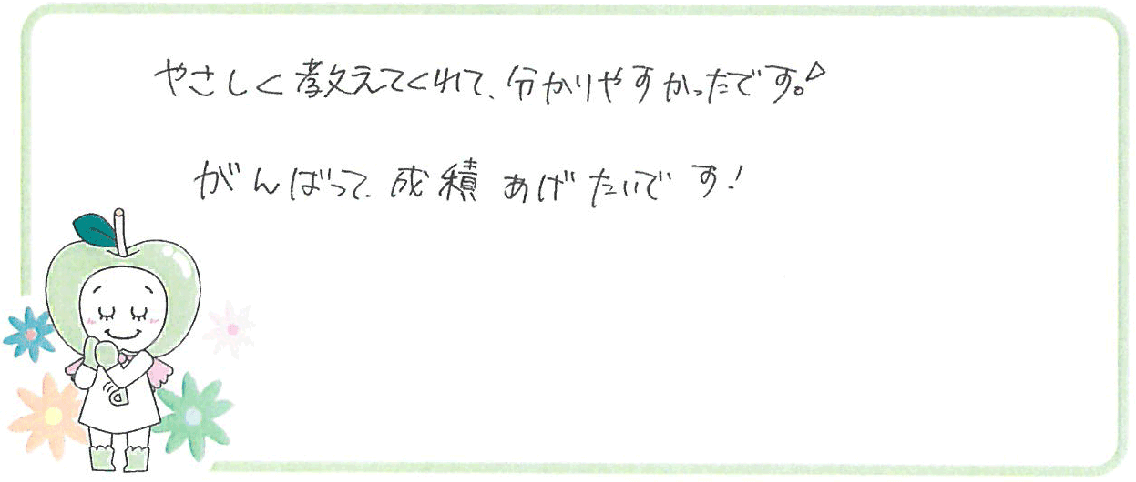 はじめは家庭教師=“難しい“、“かたい”イメージがあったという、東大阪市のMくん。 体験学習後には、思ったより楽しかった!と勉強にやる気もみせてくれて先生もすごく嬉しかったです。 これから、デスクスタイルの家庭教師がMくんが楽しく勉強できるようにしっかりサポートしていくから、成績アップ目指して一緒に頑張りましょう!