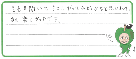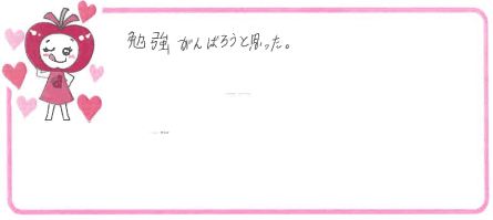 最初はドキドキしていたかもしれないけど、話をしていくうちにリラックスしてくれて楽しく一緒に勉強できたね。無料体験授業を経て、勉強に対してのやる気もでてきたようでした。これから家庭教師の講師と一緒に頑張っていくから、家庭学習の習慣をつけて、成績アップ目指して一緒に頑張ろう!