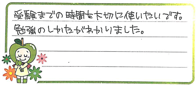 これまで塾に通っていたAちゃんは、自分から上手く質問する事が出来ず、中間期末テストでもあまり結果が出ていませんでした。家庭教師の無料体験を受けて「やり方をつかんで、家での勉強を頑張らないといけない!」というのに気付いてくれて、デスクスタイルに入会する事になりました。毎日少しずつ予習・復習を頑張って、江津市の公立高校目指して頑張ろうね!