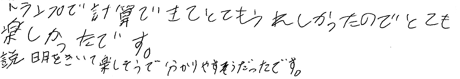 兄弟で体験学習を受けてくれた、H君とY君。弟のH君は、最初緊張した様子だったけど、話をしていくうちに打ち解けてくれて、とても楽しんで授業を受けてくれたね!授業後には2人共、勉強を楽しいと思ってくれて、「このやり方なら、頑張れそう!」とやる気になった表情を見せてくれたので嬉しかったです。これから点数アップ目指して一緒に頑張りましょう!
